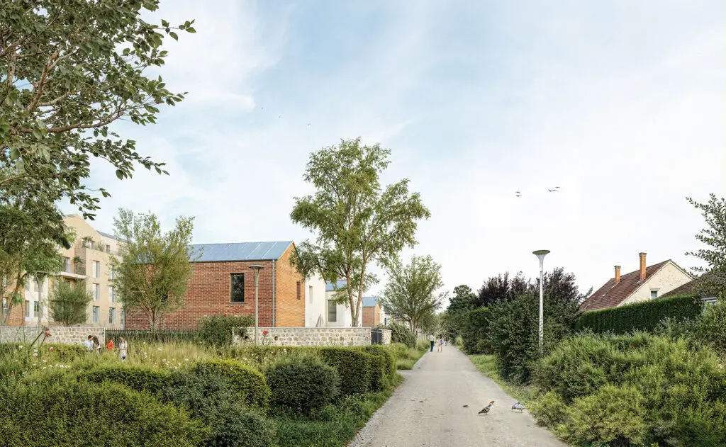 Le volet paysager occupe une place essentielle dans le projet. Nous avons souhaité créer de véritables îlots de fraîcheur et mettre en valeur l’architecture grâce à la plantation de nombreux arbres et essences variées. La voie nouvelle devient un axe paysager structurant, animé par un alignement d’arbres soigneusement sélectionnés pour offrir une palette de couleurs évoluant au fil des saisons. Les massifs arborés, disposés avec attention, apportent intimité aux logements, adoucissent les perspectives et contribuent à une atmosphère apaisante et qualitative. Ce travail paysager renforce l’identité du lieu et participe pleinement au confort de vie des futurs résidents.