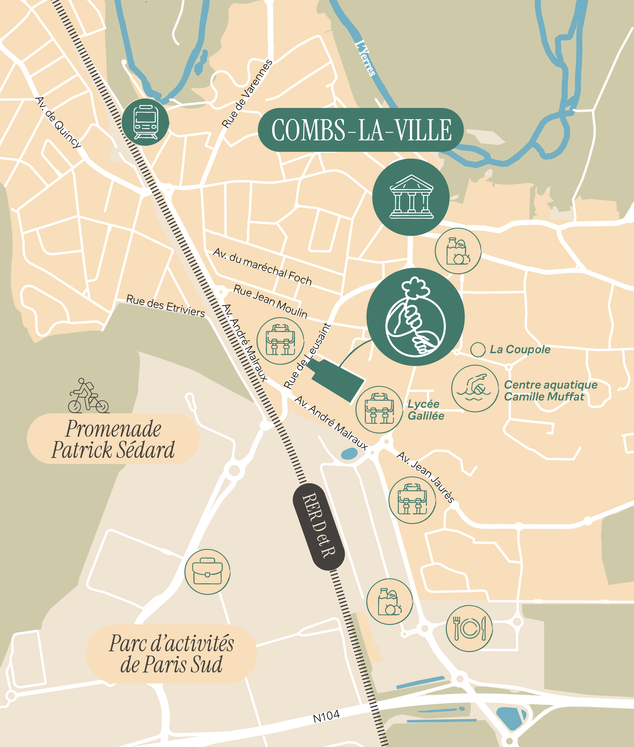Les plus jeunes, à pied ou en trottinette, rejoignent leur établissement scolaire, la piscine municipale ou encore leur centre de sport. Les parents rejoignent facilement leur lieu de travail avec des trains toutes les 8 minutes aux heures de pointe ou encore par l’accès direct à la Francilienne (RN 104) à seulement 2 minutes.